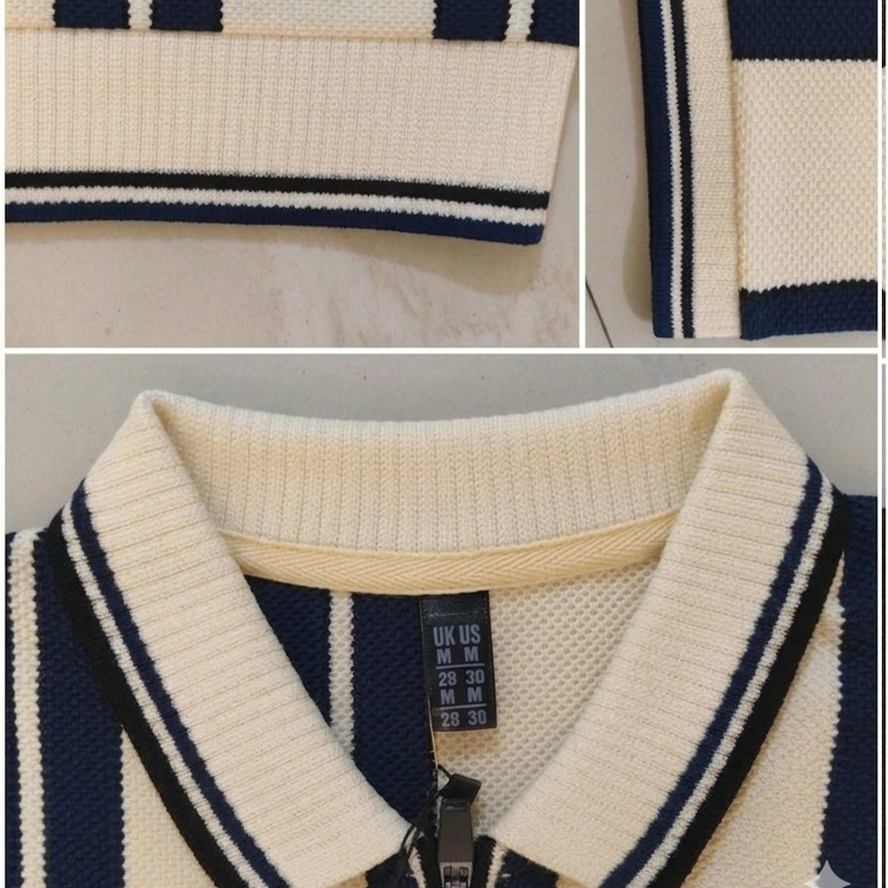 Inspired by the timeless Old Money aesthetic, this men’s striped polo shirt combines refined heritage style with modern performance fabric. Featuring bold vertical stripes in a classic tri-color combination, it delivers quiet sophistication with a waffle-textured body, ribbed polo collar, and a zip placket for a clean, polished finish. Built with 4-way stretchable fabric, it moves effortlessly with you — structured enough for smart-casual wear, comfortable enough for all-day use.